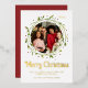Modern Photo Merry Christmas Script Wreath Foil Holiday Card