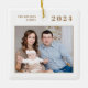 Modern Photo Name Gold Merry Christmas Ceramic Ornament