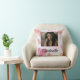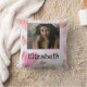Modern Photo Name Watercolor Pink White Hearts Cushion