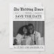This black and white photo Save the Date invitation evokes the timeless elegance of a vintage newspaper. The striking image of the couple is paired with a sleek, minimalistic layout, blending nostalgia with modern sophistication. A perfect way to announce your special day with style and grace.