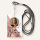 Modern, trendy Notary photo badge features single photo, contact details on a rose gold and blush pink background. Personalise further with your details and logo.