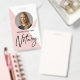 Modern, trendy Notary photo badge features single photo, contact details on a rose gold and blush pink background. Personalise further with your details and logo.