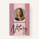 Modern, trendy Notary photo badge features single photo, contact details on a rose gold and blush pink background. Personalise further with your details and logo.