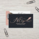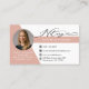 Modern, trendy Notary photo business card features rose gold typography script ''notary'' on the front, single photo, contact details on a rose gold and white background. Personalise further with your services and social media on the back.
