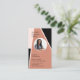 Modern professional notary business card featuring a stylish photo logo against a dusty peach pink background. The reverse side features services offered, the contact info and business name. You can customise the text size, font, to fit your own personal style. Replace this sample place holder photo with your own portrait orientation business card. A peach pink background on the front and back of the card.