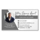 Modern, trendy Notary photo business card features single photo, contact details on a grey and white background.