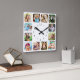 Modern personalised keepsake wall clock with simple clean lines featuring twelve rounded squares holding your favourite photos of family, pets, travels or other special memories.