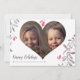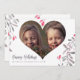 Simple minimalist elegant trendy faux silver grey grey handwritten script Happy Holidays custom photo winter holidays Christmas card with delicate pink holly berry branches. Easy to personalise with your photo (heart shape), text, and signature.
