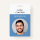 Modern and professional photo badge featuring your photo in a circle frame with trendy minimalist typography. On the back is pace for contact information, web site or social media as well as your custom logo or QR code. This is the tranquil blue version.