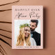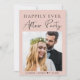 Modern blush pink elopement or private wedding announcement and reception or celebration party invitation. The front features your wedding photo, "Happily Ever After Party" in a mix of simple typography and a chic script and your first names and wedding date. On the reverse side, personalise your announcement and invitation, input the URL address of your wedding website to create a QR code for guests to scan for all the details and to RSVP online, and add your names in a signature-like script.