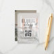 Simple, minimalist, modern black and white wedding details card, with QR code and custom photo.