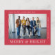 Modern red corporate Christmas holiday postcard featuring a photo of your business team and "Merry & Bright" in stylish white typography. Personalise your company name and customer/client thank you message in simple white typography. On the back, add an additional personalised message of gratitude.