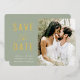 Modern Photo Sage Green Script Save The Date Gold
