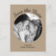 Your favourite engagement photo takes centre stage on this simple and elegant Save the Date, accented in a modern circle on a beige background with black type. This Save the Date is easy to customise with your own photo and wedding information; however, if you need help changing the colour of type or anything else, just contact us at prettyfancyinvites@gmail.com.