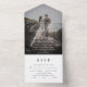 Modern Photo Script RSVP Entree Navy Blue Wedding All In One Invitation
