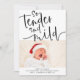 Modern Photo Tender and Mild Black Script White. Elegant style for your holiday greetings, ideal for parents of a newborn to send your favourite baby photo with a line from the much loved Carol, So Tender and Mild, in a stylish set script at the top and simply replace the photo beneath with your own. Easily personalise your names and greeting at the bottom. Text and background colours can be changed if you wish via the customise further option.