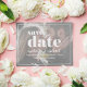 This design features a modern simple photo picture minimal, with a vellum photo transparent overlay, and a budget-friendly postcard template. a minimalist engaged engagement couple, a creative stylish trendy typography, a white bold text font overlay, a clean simplistic simple trendy, sleek contemporary modern style, a classic traditional whimsical fun, a vertical classic landscape photo, a modern typography design, a one photo collage template