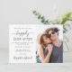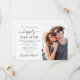 Modern wedding save the date announcement featuring your photo and "Happily Ever After" in a mix of simple typography and a stylish script with swashes. Personalise your save the date details and add your names in a signature-like script. On the back, your names and wedding date are joined together by a heart.