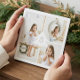 Capture your families special memories with our custom photo collage plaque. Our modern elegant design features a minimalistic three photo collage grid layout with a modern white and faux gold pine tree monogram design placed in the centre of the three photo collage layout. Customise with monogram. You can customise the text size, text colour, font and layout for your own personal design preference.