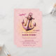 Modern Pink Ahoy! Anchor Nautical Baby Shower Invitation