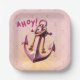 Modern Pink Ahoy! Anchor Nautical Baby Shower Paper Plate