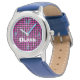 The Modern Pink and Black Pop Art Personalised Watch features a unique pop art design with a modern colour palette that uses blue and pink and black to create a unique modern watch that can be personalised to make a one-of-a-kind gift you will love to give.