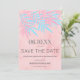 Modern Pink and Blue Palm Tree Trendy Save The Date