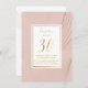 This modern and elegant 30th birthday invitation features gold (simulated foil) and white lines over a pale pink background (that can be easily changed to any colour of your choice). The number "30" is written in a modern script font and matches the gold lines in the background. Customise this trendy invite with the name and party info.