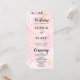 What adds a touch of enchantment to this wedding program are the ornate script fonts used for the words "Welcome," "Ceremony," and "Wedding Party." These decorative elements infuse the program with a sense of celebration and romance, perfectly contrasting with the simplicity of the block font. The interplay between the elegant script and the straightforward text creates a harmonious balance, capturing the essence of modernity and timeless charm.