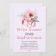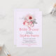 The words "Bridal Shower," the bride-to-be's name, and the registry information are all printed in a pretty pink colour to match the pink in the floral design. The rest of the text is in dark grey, creating a nice contrast and making it easy to read. The use of a variety of fonts and styles in the design gives it a unique and modern look, ensuring that it will stand out among other bridal shower invitations.