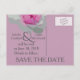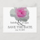 Beautiful pink and grey floral watercolor design combined with elegant and modern typography. Large ampersand supports the flower and joins the bride and groom names. Save the Date and the Date are below. A clean white background on the front and a pink background on the back. You can change the text, replace the flower with your photo if you wish, and even the background colour. This Save the Date card is part of wedding stationery set. Please contact me if you need help finding the companion items.