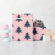 Modern Pink And Navy Blue Pattern Christmas Trees Wrapping Paper