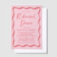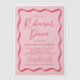 Invite guests to a stylish pre-wedding gathering with this Modern Pink and Red Wavy Frame rehearsal dinner invitation. The words "Rehearsal Dinner" are elegantly written in a bold red script on a soft pink sheer vellum background, creating a sophisticated yet modern look. A vibrant red wavy border frames your event details, adding a unique and eye-catching touch. Perfect for both casual and formal celebrations, this invitation beautifully sets the stage for a memorable evening while ensuring your guests have all the important details.