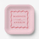 Modern Pink and Red Wavy Frame Wedding Paper Plate