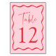 Modern Pink and Red Wavy Frame Wedding Table Number