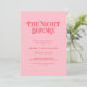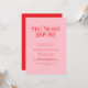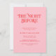 This modern pink and red wedding rehearsal dinner invitation features a clean and stylish design. The soft pink background pairs with bold red text to create a fresh and modern look with a subtle retro touch. The minimalist layout keeps all event details clear and easy to read.