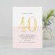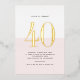 Invite guests to your event with this customisable fortieth-birthday invitation. It features a pink and white colour block with modern typography. Personalise this modern 40th birthday invitation by adding your event details. This gold foil fortieth birthday invitation is available in other foil colours.