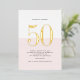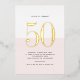 Invite guests to your event with this customisable fiftieth-birthday invitation. It features a pink and white colour block with modern typography. Personalise this modern 50th birthday invitation by adding your event details. This gold foil fiftieth birthday invitation is available in other foil colours.