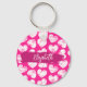 Modern Pink and White Doodled Heart Valentine Name Key Ring