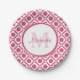 Modern Pink and White Geometric Monogram With Name Paper Plate
