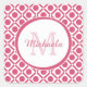 Modern Pink and White Geometric Monogram With Name Square Sticker