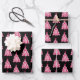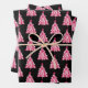Modern Pink Black Christmas Tree Pattern Wrapping Paper Sheet