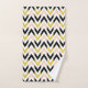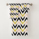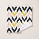 Towel set with black, white, peachy pink and faux glitter golden chevron pattern.