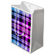 Modern pink blue black plaid pattern medium gift bag