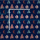 Modern Pink Blue Cookie Tree Pattern Holiday Fabric. The trees are in the shape of cookies - moon, bell, Christmas tree and star. Abstract tree pattern. Great for a DIY project, especially for Christmas time. The background is dark blue but you can change it - click the customise button and use the design tool.