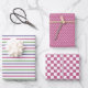 Modern Pink, Blue, Green Stripes, Pink Checkered Wrapping Paper Sheet