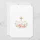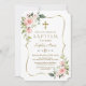 Unique card design featuring watercolour delicate pink blush flowers, faux gold shape, faux gold cross, floral divider, on a white background. On the back blush flowers bouquet and cross on white background. Use Personalise tool to add your info, change fonts, font's colours. For matching items, please, visit my New Baptism/Christening Celebration Collection.