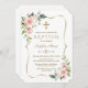 Modern Pink Blush Flowers Gold Frame Baptism Invitation