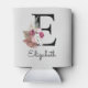 Modern Pink Boho Girly Floral Initial E Can Cooler