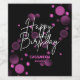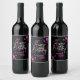 A modern, stylish and glamourous birthday wine label. This design features a vibrant typography "Happy Birthday" with pink gradient bokeh on a black background. Personalise and add your party details.